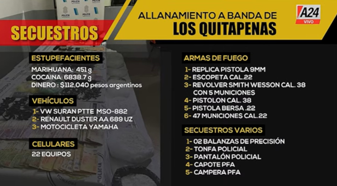 Una banda narco, conocida como “Los quita penas”, fue desarticulada después de una serie de allanamientos realizados en distintos puntos del conurbano bonaerense.