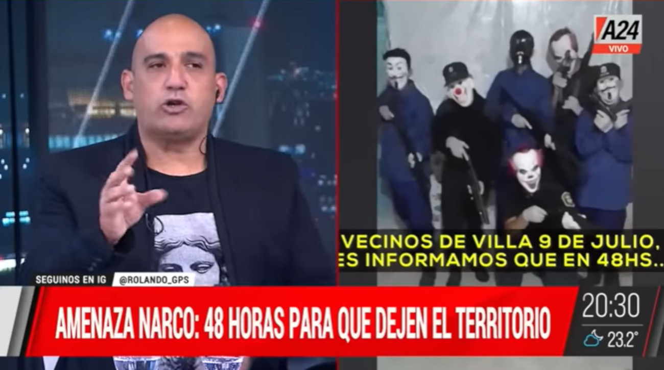 La disputa es por el control del negocio de la droga en la villa 9 de Julio. “Vecinos de la villa 9 de Julio, les informamos que si en 48 horas la organización de Max Alí Alegre alias ‘Alicho’ y ‘El gordo’ Blas Gómez no abandona la villa 9 de Julio van a ser desbaratados a sangre y fuego por nosotros. Les informamos que no salgan de su casa, ya que el territorio tiene dueño y esta organización lo ha tomado sin ningún contrato”, dice uno de los narco, que cubre su rostro con un máscara de payaso.