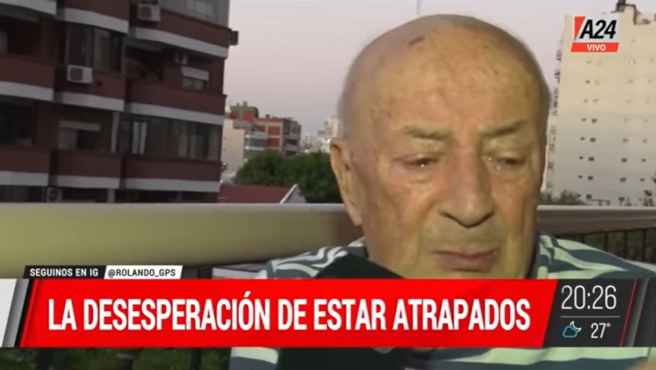Marta y Osvaldo, de 84 años, no pueden movilizarse. Y no tienen medicación. El edificio en el que viven está completamente a oscuras. “Esto es una crueldad. Estamos presos acá adentro, sin agua ni luz. Estoy destrozada. Mi marido es paciente oncológico”, cuenta la mujer a GPS.
