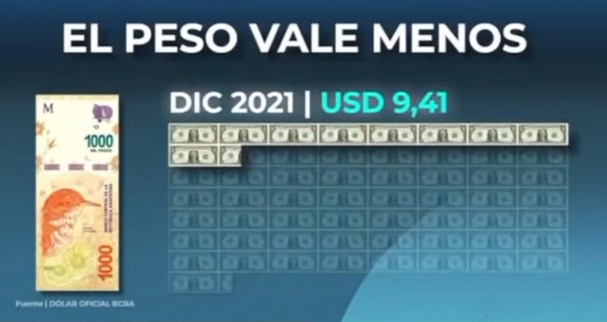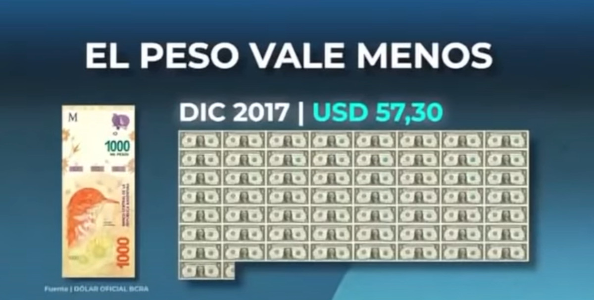 “Llevamos en lo que va del año un 23 de por ciento de inflación acumulada. Se supone que en mayo llegamos a 30 por ciento y todos los economistas ponen un piso de un 70 por ciento anual. ¿Qué quiere decir esto? Que el billete de mil pesos va perdiendo valor”.